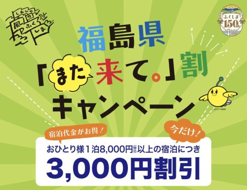 福島県「また来て。」割で3000円引!2026年4月1日予約受付開始